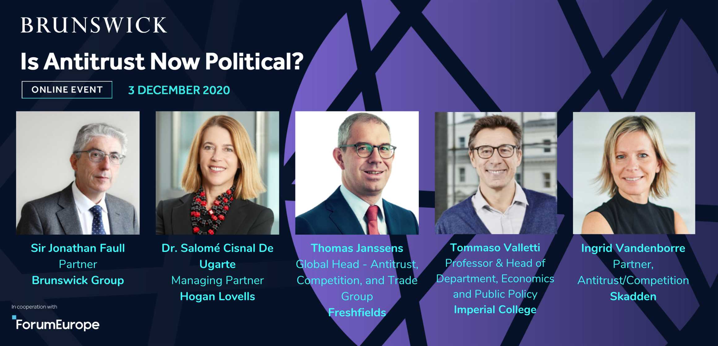 On 3 December, join Brunswick Group and Forum Europe for the first of two discussions focusing on whether antitrust has become 'politicised'.
